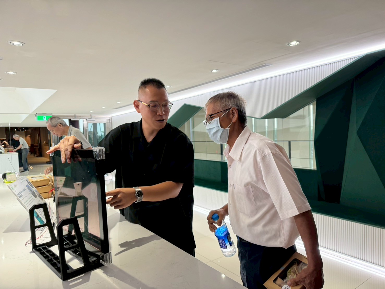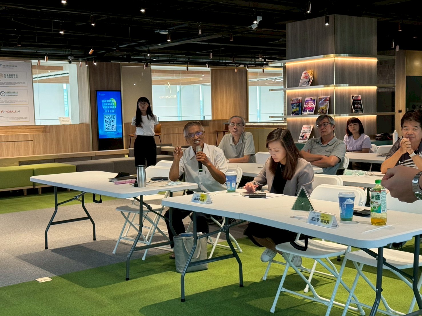 講座結束後,溫治宇董事長更進一步於現場展示「GOOPV 光效建材玻璃」及「GOOTREE 智慧淨零光樹」等創新技術,展現綠色建築結合再生能源的可行方案。活動最後開放現場QA與茶敘交流,許多與會者也針對產業落地應用與投資機會踴躍提問,討論氣氛熱絡,充分展現跨域交流的活力與深度。